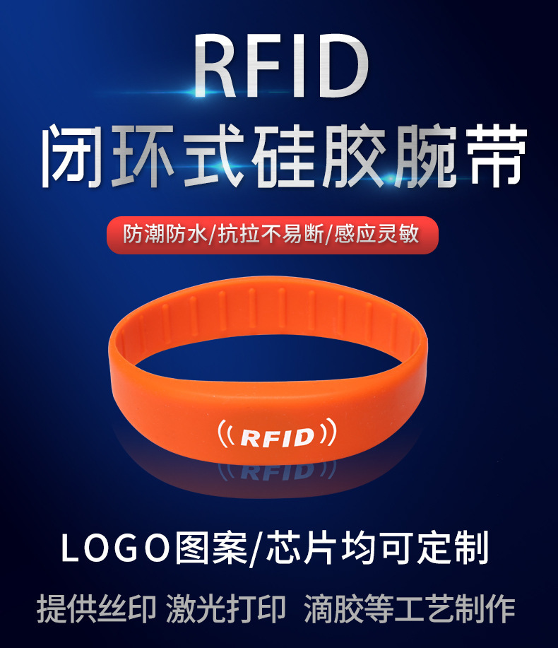 厂家直销RFID硅胶腕带景区出入门票手环防水可重复使用IC腕带工厂
