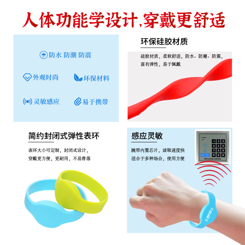 厂家直销RFID腕带体育公园电子门票手环制作景区一卡通IC硅胶腕带